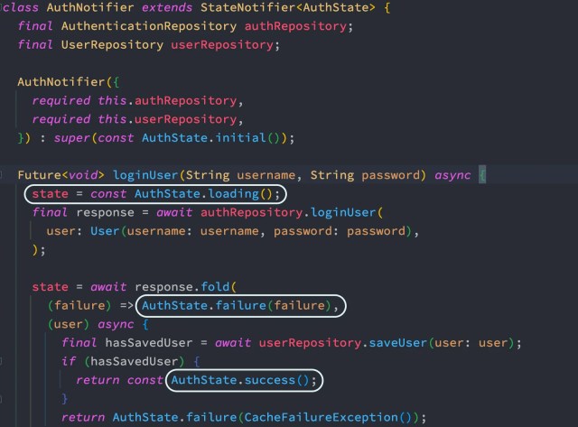 You may see, you try to login as a user by tapping on a button and a method loginUser() get triggered, we are waiting for three states like